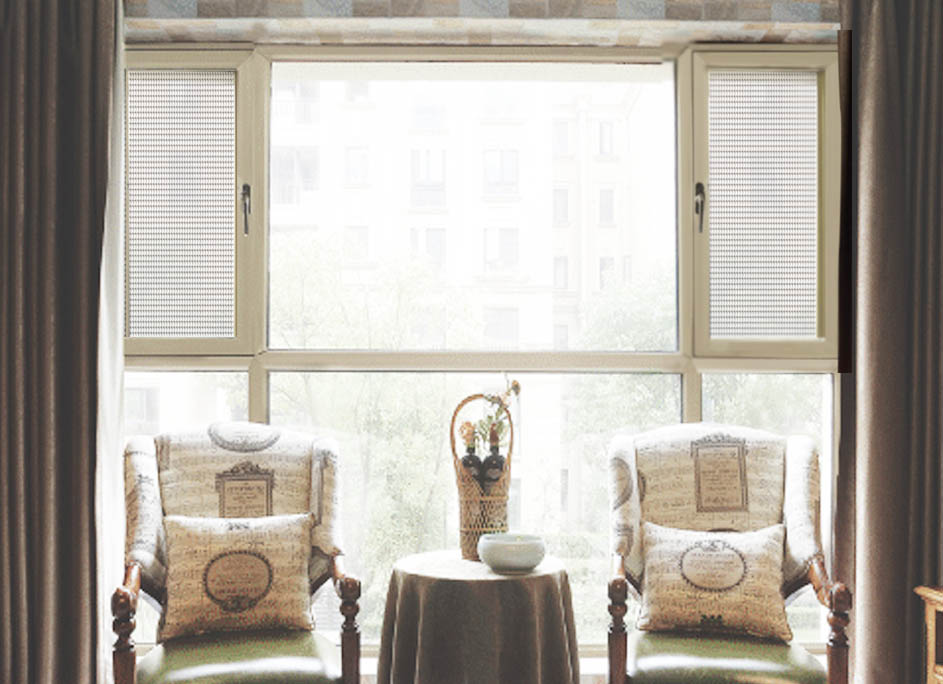 6.产品特点: 7.适用范围: 适用于外平开窗型,纱窗安装方式为内装内平开。 8.型材颜色: 白色、咖啡色、灰色、墨绿色——喷涂;香槟——电泳;金丝楠木、红酸枝——木纹。